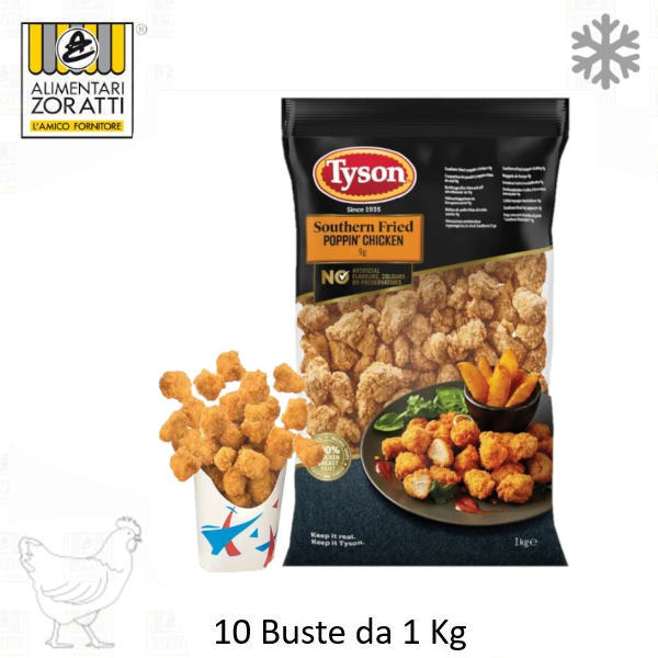 Poppin’ Chicken 10 Buste da 1 Kg (Bocconcini di Pollo con Panatura in Stile Southern Fried))